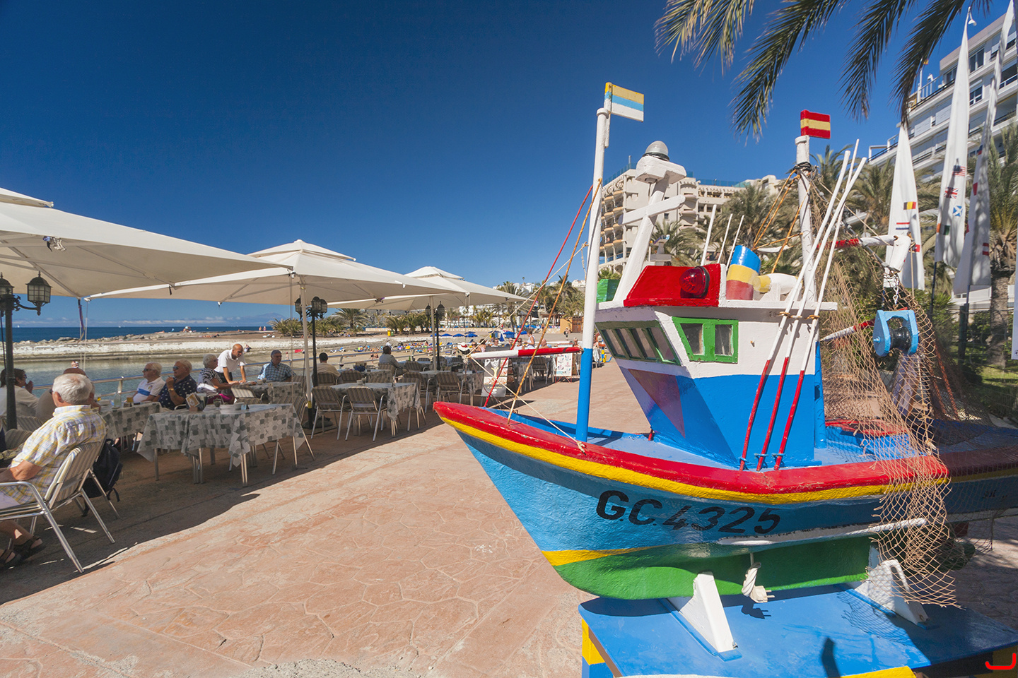Photos of Arguineguín town in Gran Canaria from 2015: Restaurant right by La Lajilla natural swimming pool